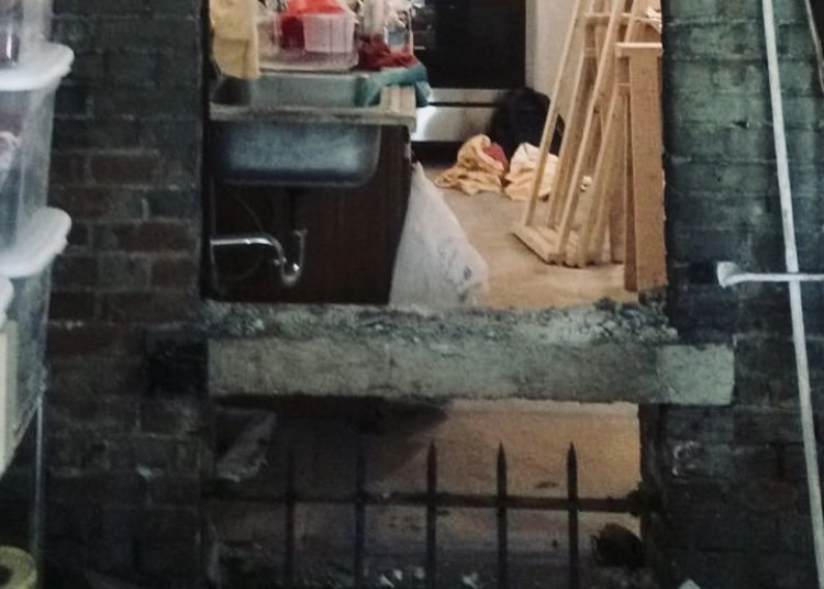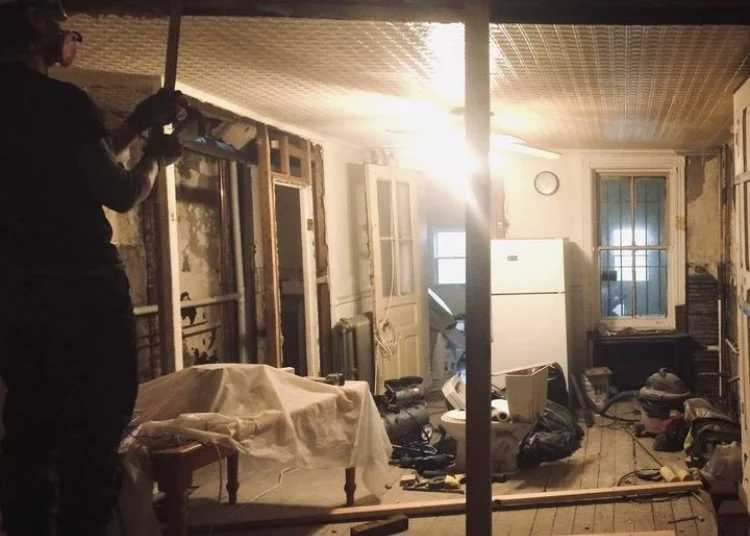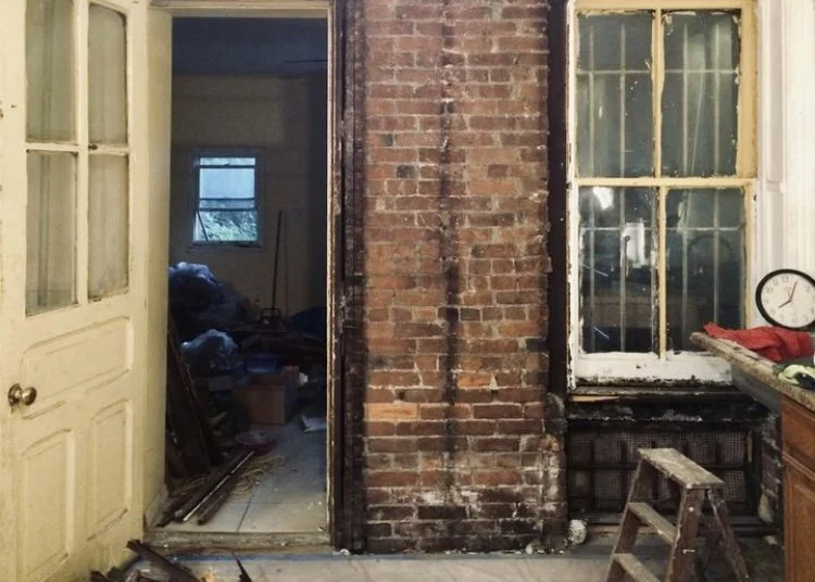 Perhaps it was this that finally made the decision for me. One evening while R was rehearsing with his band one room over, I took a crowbar to the wallboard, levering it off, first in large sheets and, later, wedges and even smaller chips that collected on the floor like scrap paper.